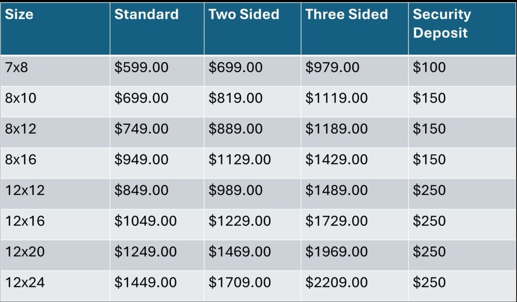 Prices include local delivery and setup (30 mile radius of Paragould Arkansas).