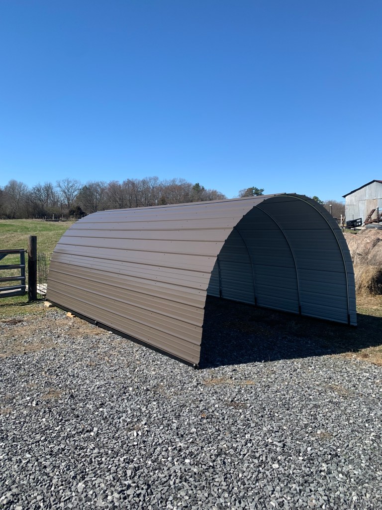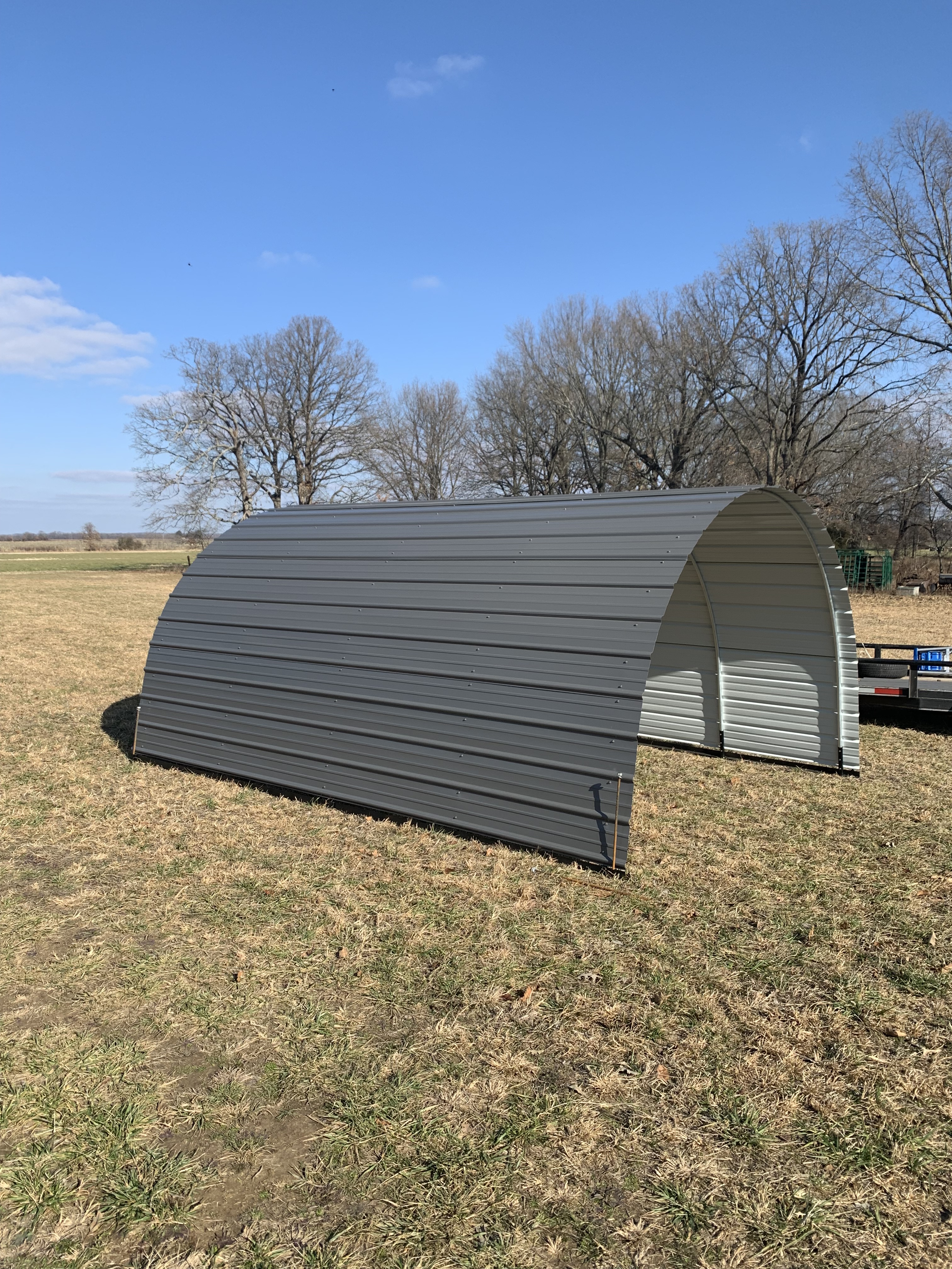 Hoop Sheds are multi-purpose, durable, and cost-efficient structures designed for outdoor protection for your equipment, ATV, livestock, supplies and more. Hoop Sheds have been proudly manufactured in Paragould Arkansas with USA produced steel since 2020. Hoop Sheds are one of a kind, precise, and consistent. With hundreds of satisfied and many repeat customers. Hoop Sheds are available in a variety of colors and have been used for everything from outdoor entertainment space, chicken coops, equipment and livestock shelters.